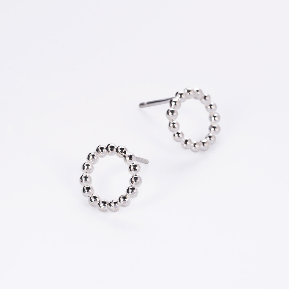 The Pebble earrings are hand-finished of sterling silver. The width of one earring is about 10mm. The size of each silver ball is 2mm.